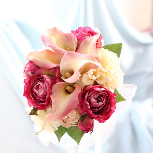 カラーのお花は、凜とした花姿と花びらがウェディングドレスの裾の開き方と似ていることから、ブーケとして大変人気が高いお花です。